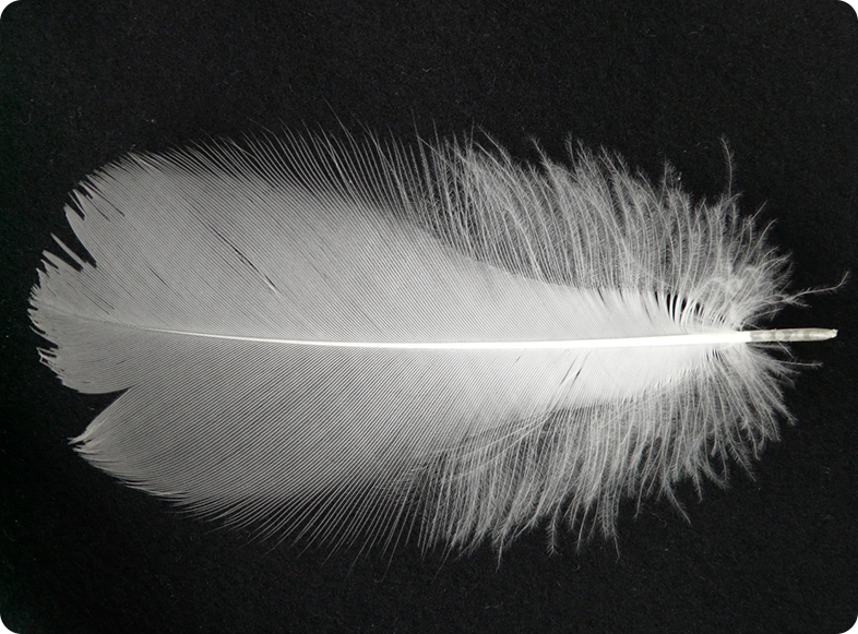 鸽子毛:从鸽子身上采集的羽毛,外观光亮度较强,肉眼较难将其与鸡毛或水禽毛片分开,一般采用显微放大的方式加以鉴别。
