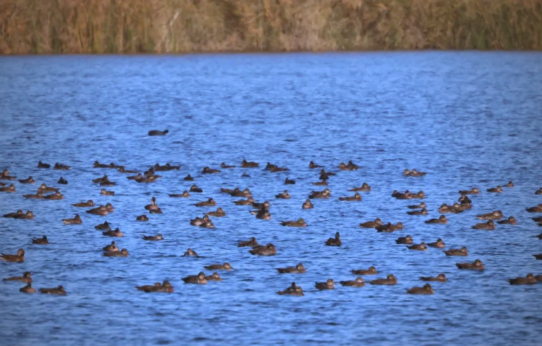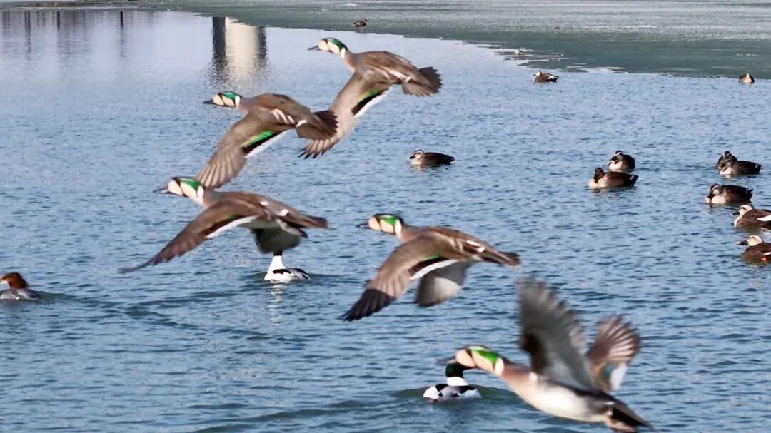 此次形成“鲲化为鹏”奇观的主要品种——花脸鸭,到底是什么品种的水禽?究竟是鸟?还是鸭子?小编在这里给大家做一个科普:花脸鸭是雁形目鸭科鸭属,花脸鸭因其雄鸟面部一道醒目的黄、绿、黑相间的类似花脸的斑斓色块而得名,它们主要分布在东亚地区,尤其是中国北方、日本、俄罗斯远东地区。花脸鸭的野生种群数量较少,繁殖成功率较低,由于分布范围较窄、栖息环境偏远、数量有限,导致我们平常很少在野外看到花脸鸭。花脸鸭以湿地中的水生植物、种子和软体动物为食,它们在生态链中扮演着重要角色,其迁徙旅程跨越数千公里,是湿地生态系统健康与否的敏感指示器。
