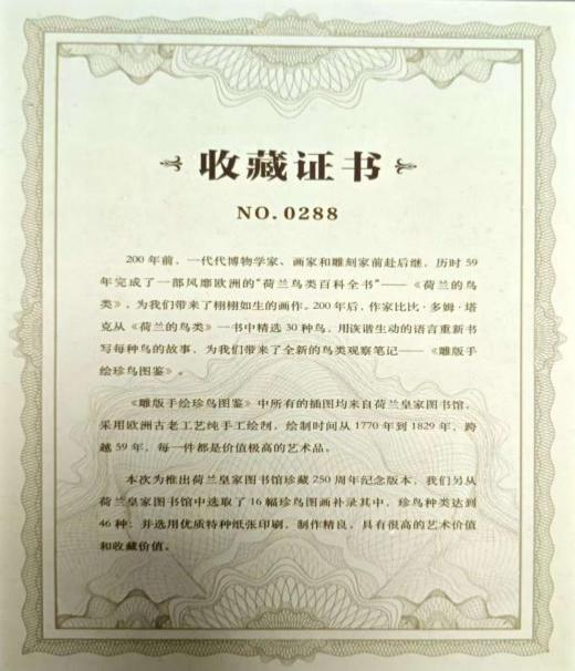 200年后,作家比比·多姆·塔克从《荷兰的鸟类》一书中精选30多种鸟,以诙谐生动的语言重新书写每种鸟的故事,为我们带来了全新的鸟类观察笔记——《雕版手绘珍鸟图鉴》。作为荷兰皇家图书馆珍藏250周年的纪念版本,另增选了16幅珍鸟图画补录其中,并采用特种纸张印刷,制作精良,具有极高的艺术与收藏价值。