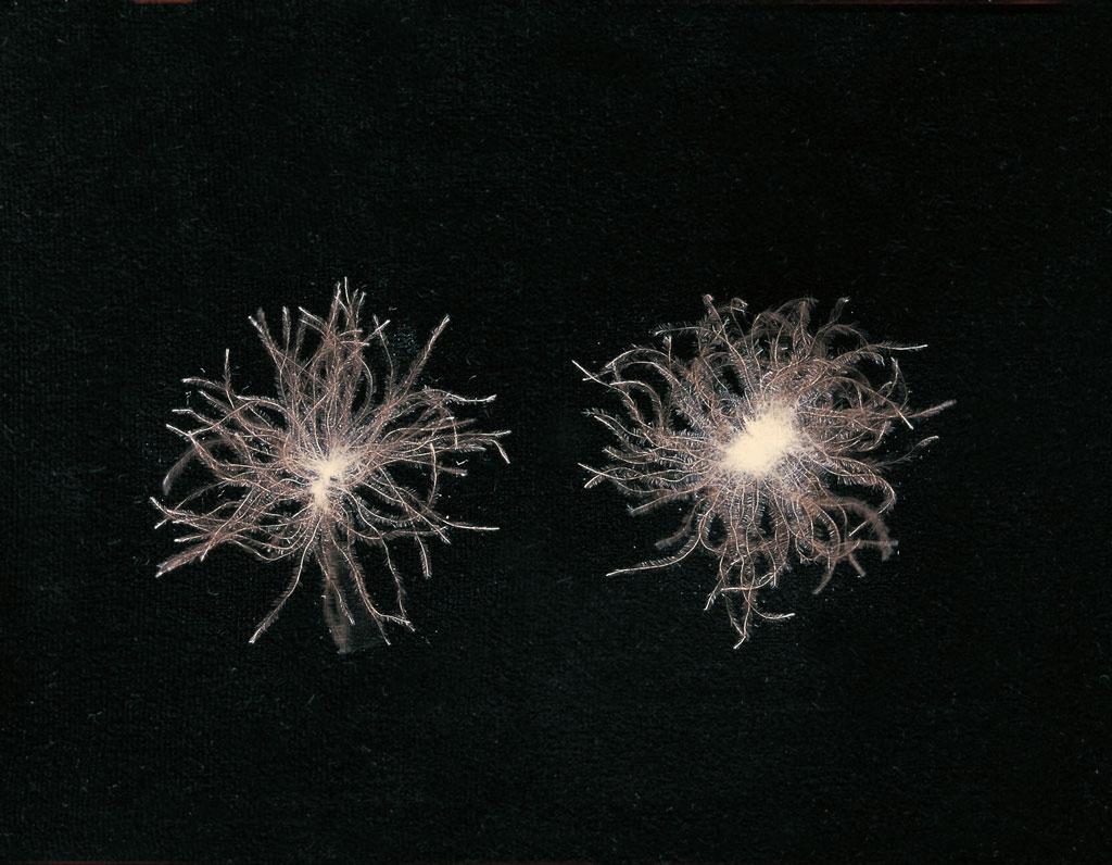 朵绒:由一个绒核放射出多根绒丝并形成朵状者。