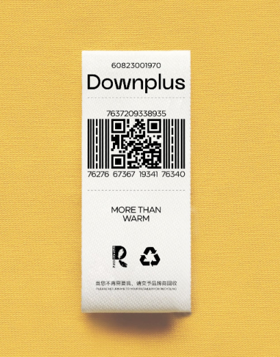 每件填充了正版的Downplus安心羽绒的衣服都有“身份证”, 真正的一物一码可追溯
