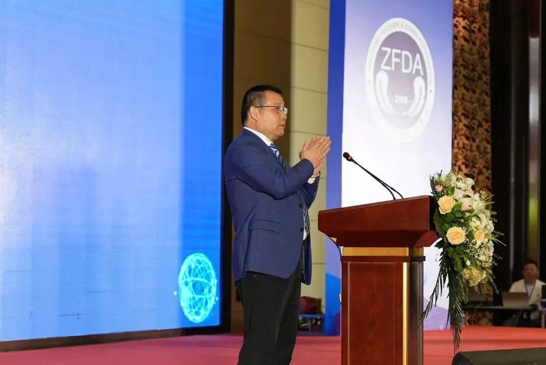(总经理杜达生代表三星羽绒接受“浙江羽绒行业2022年度功勋企业”授牌)