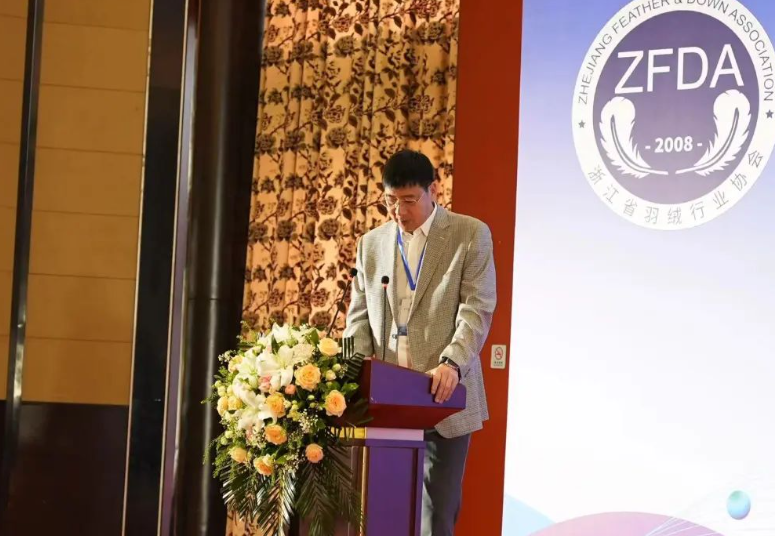 (浙江羽绒行业协会专职副会长陈招贤主持)