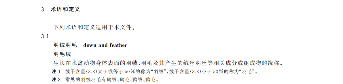 下面是最新的羽绒羽毛国家标准——GB/T 17685-2026《羽绒羽毛》的部分内容,主要是羽绒羽毛的术语和定义: