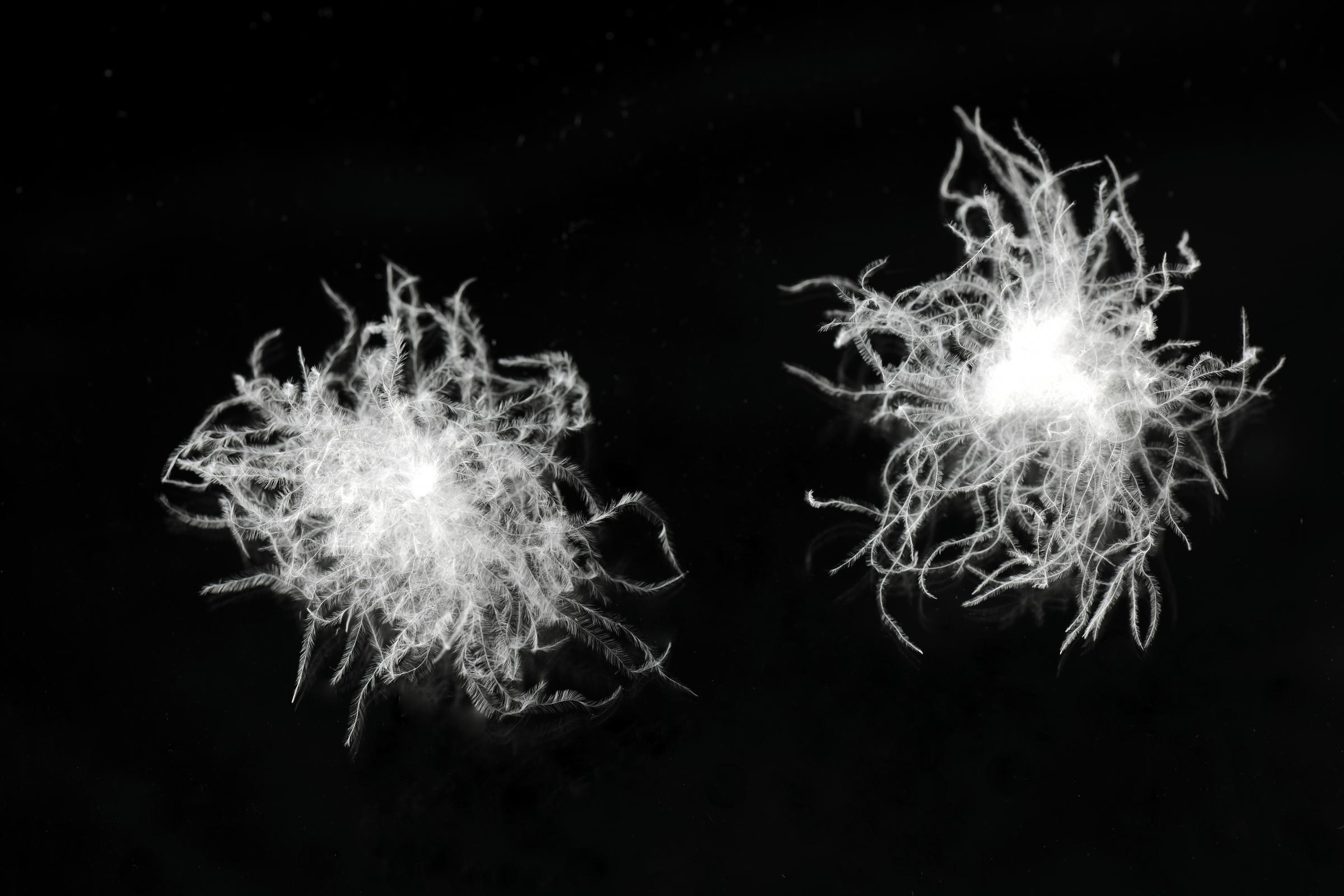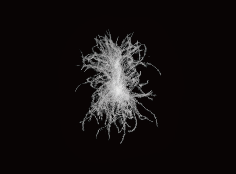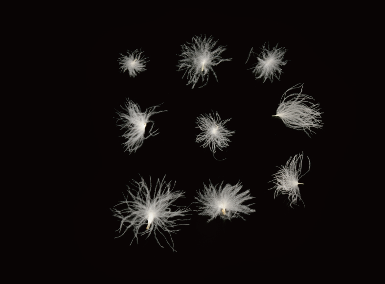 朵绒:一个绒核放射出多根绒枝并形成朵状者。